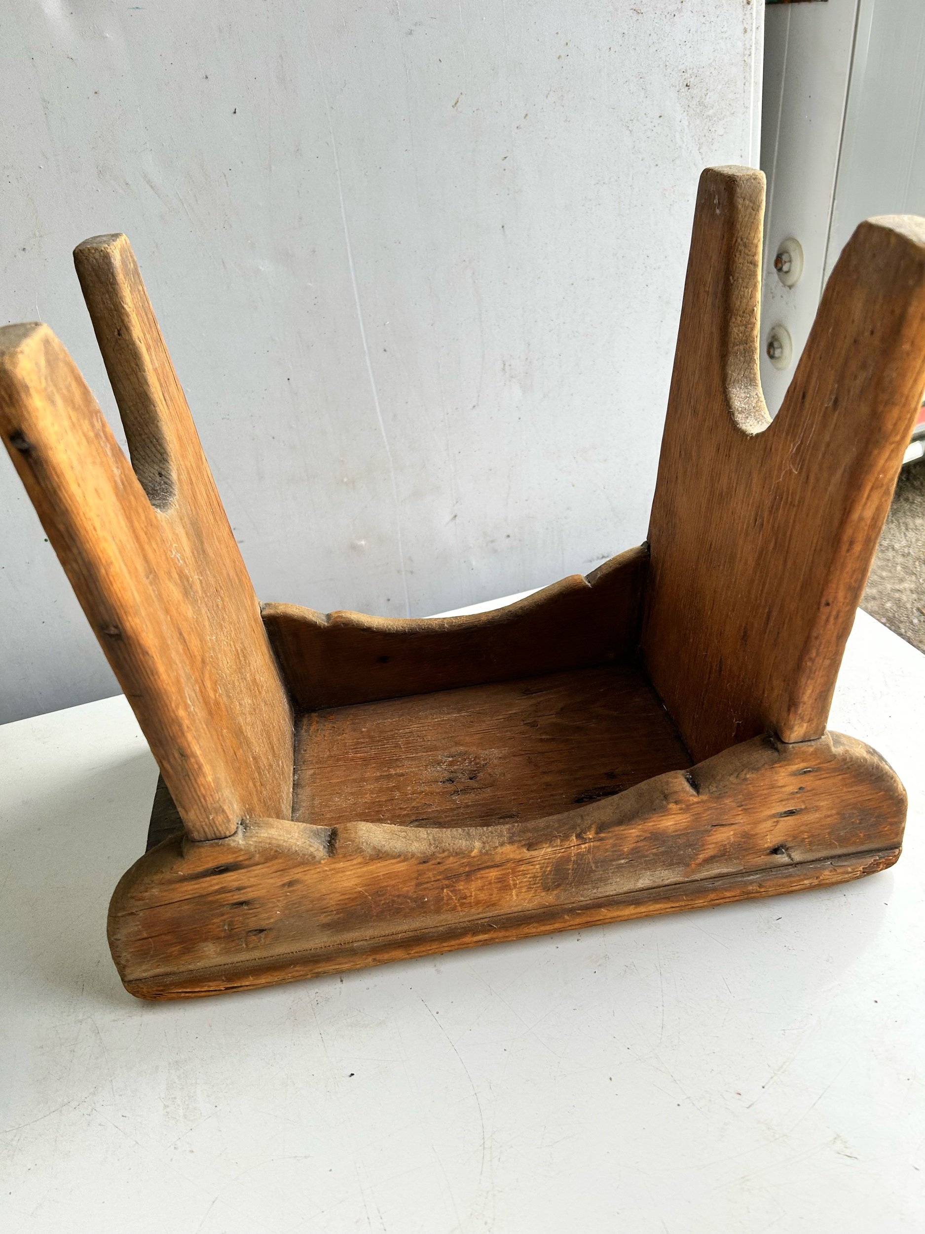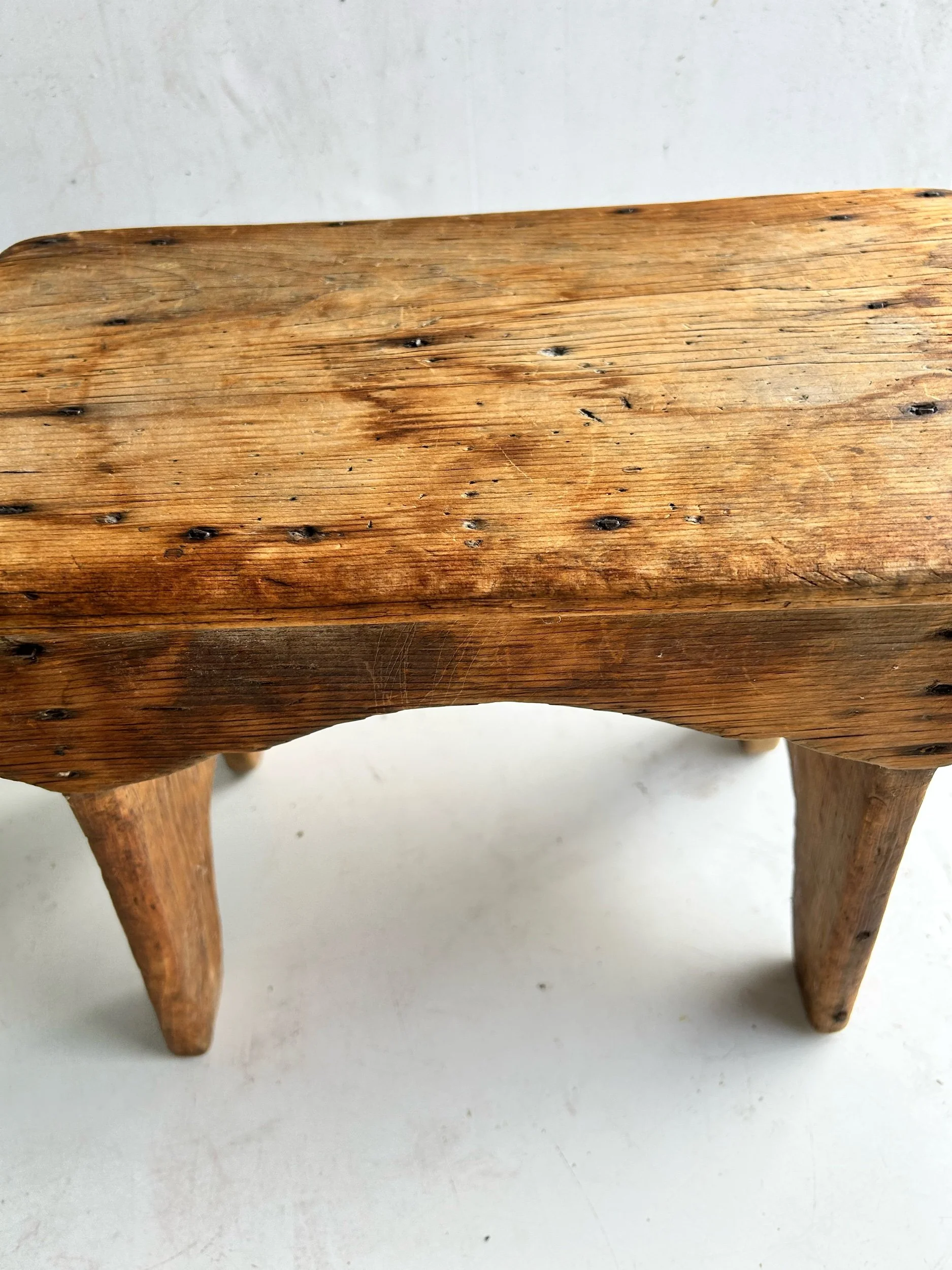 • The broad, thick seat top and very simple shape point to practical farmhouse use rather than decorative furniture